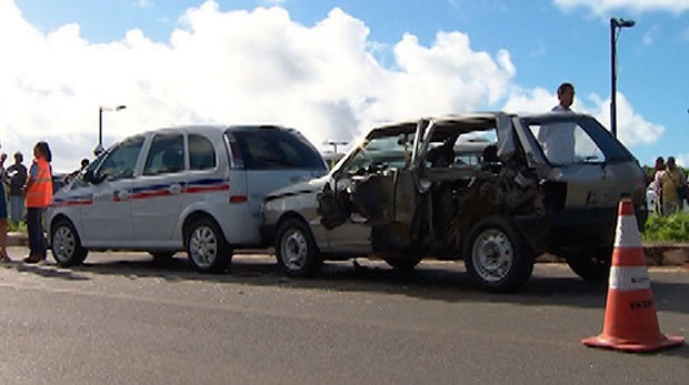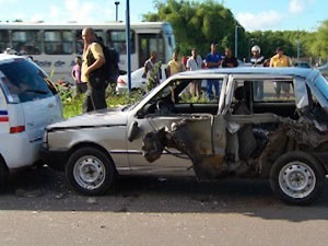 Segundo testemunhas, um terceiro veículo apareceu em alta velocidade, atingiu os dois que conversavam na rua e destruiu a lateral do Uno, cujo motorista morreu na hora. O terceiro condutor fugiu sem ser identificado e não prestou socorro às vítimas.